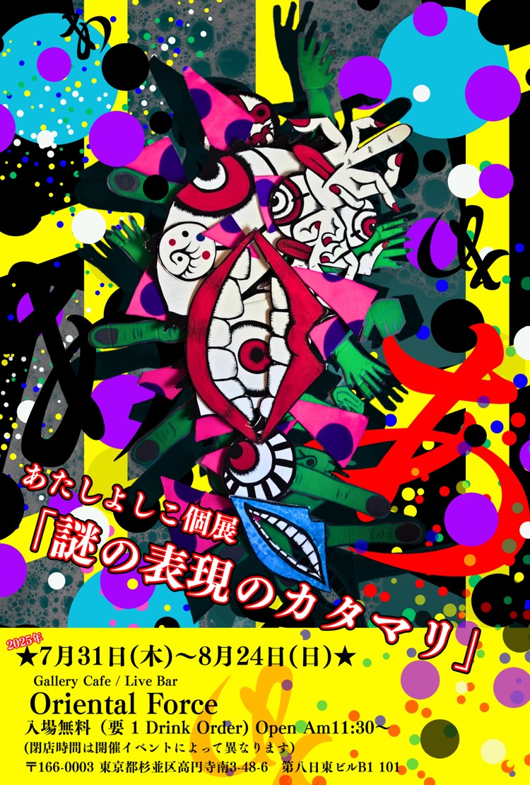 Oriental Force、7/31(木)~8/24(日)の期間、名古屋を拠点に活動なさる、あたしよしこさん個展「謎の表現のカタマリ」が開催されます!