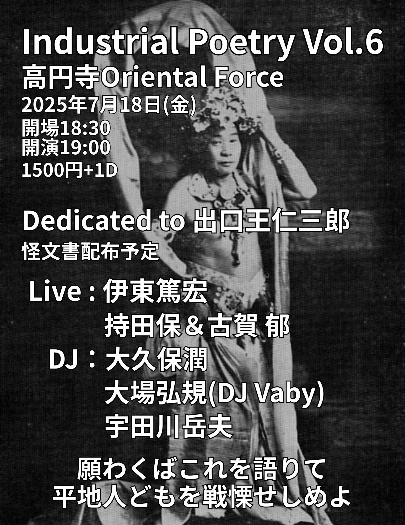 恐山VIBRATIONや執筆などでご活躍の持田保さんプレゼンツ、「Industrial Poetry Vol.6」!
